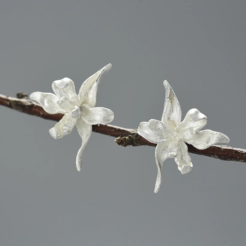 1 Pair Chinoiserie Pastoral Flower Plating Sterling Silver Ear Studs