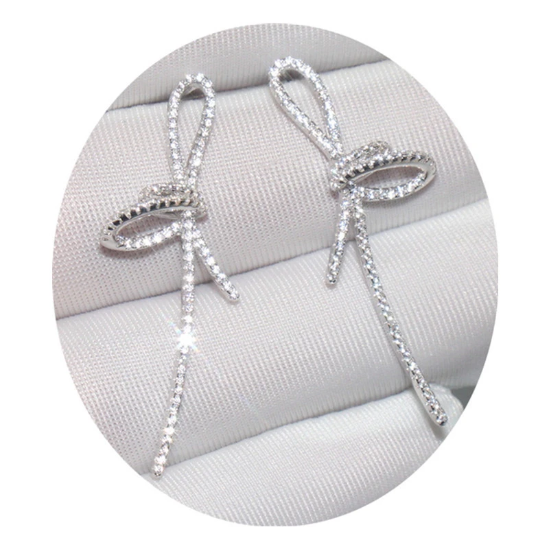 1 Pair Classic Style Bow Knot Tassel Inlay Sterling Silver Artificial Gemstones Drop Earrings