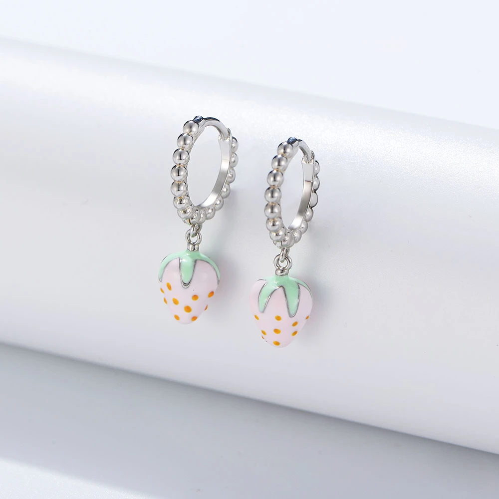 1 Pair Cute Sweet Strawberry Sterling Silver Drop Earrings