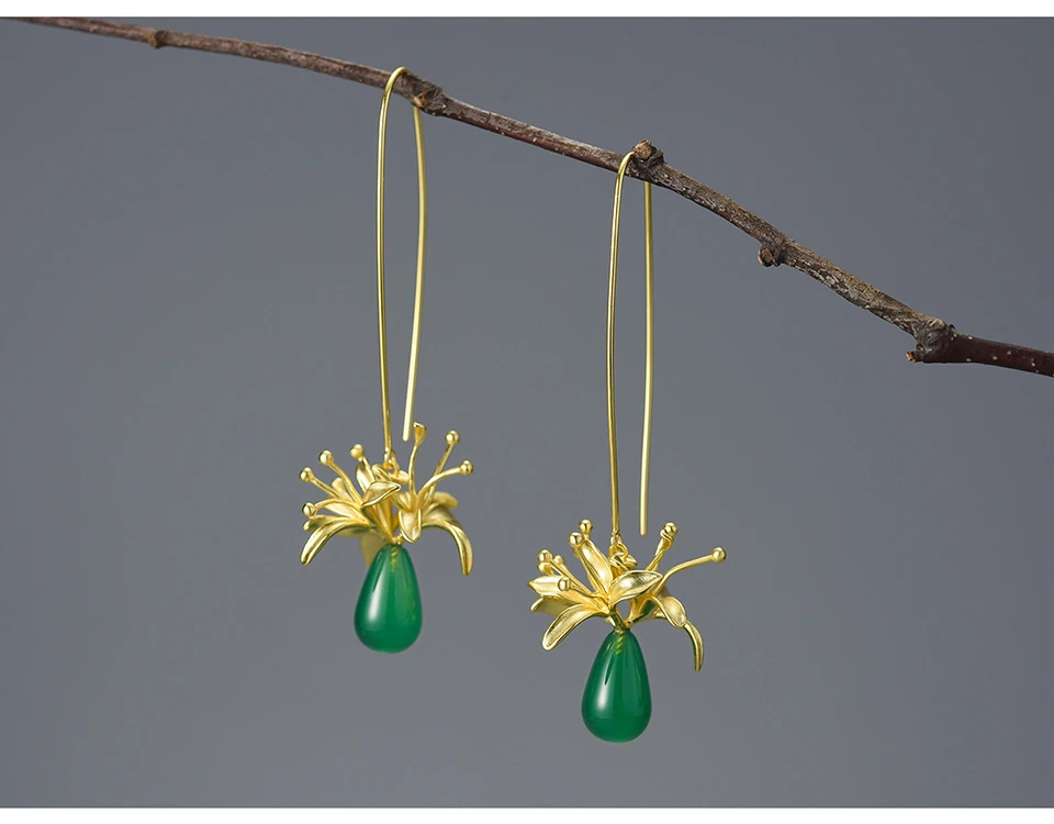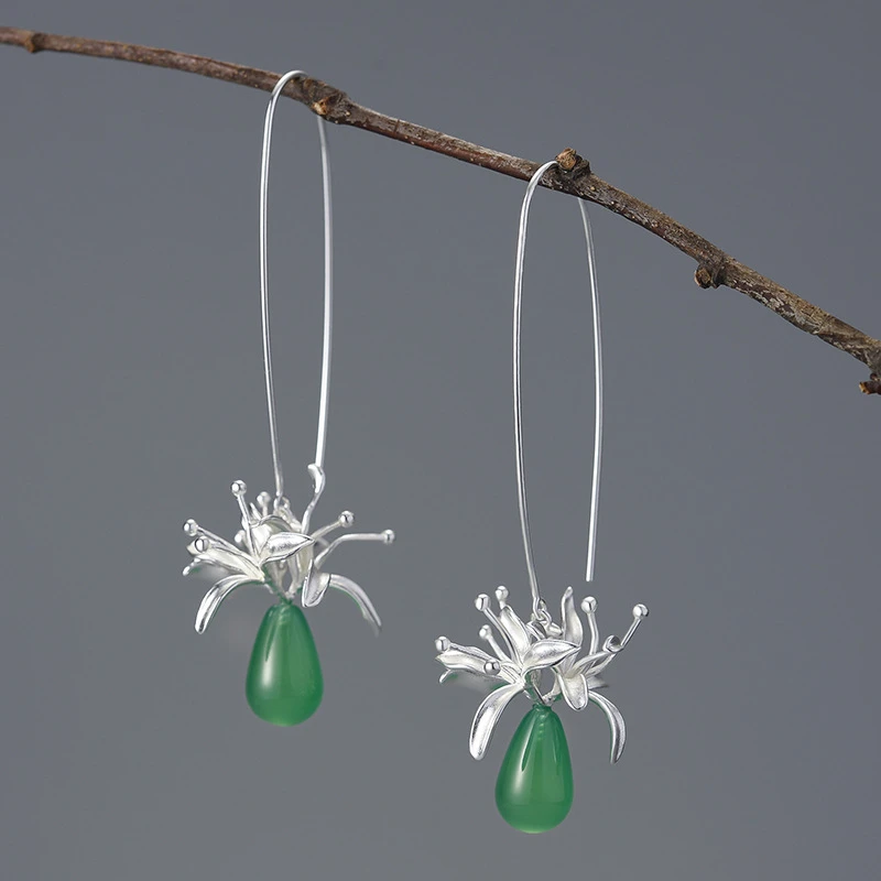 1 Pair Elegant Flower Inlay Sterling Silver Agate Drop Earrings