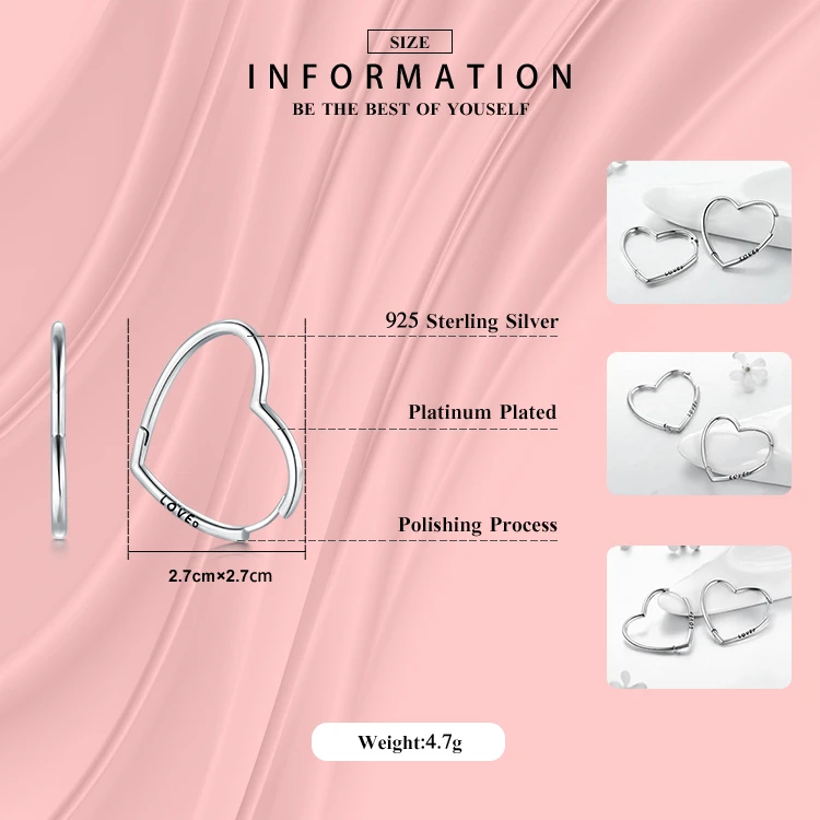 Be the first to review “1 Pair Elegant Heart Shape Sterling Silver Plating Three-dimensional Earrings” Cancel reply