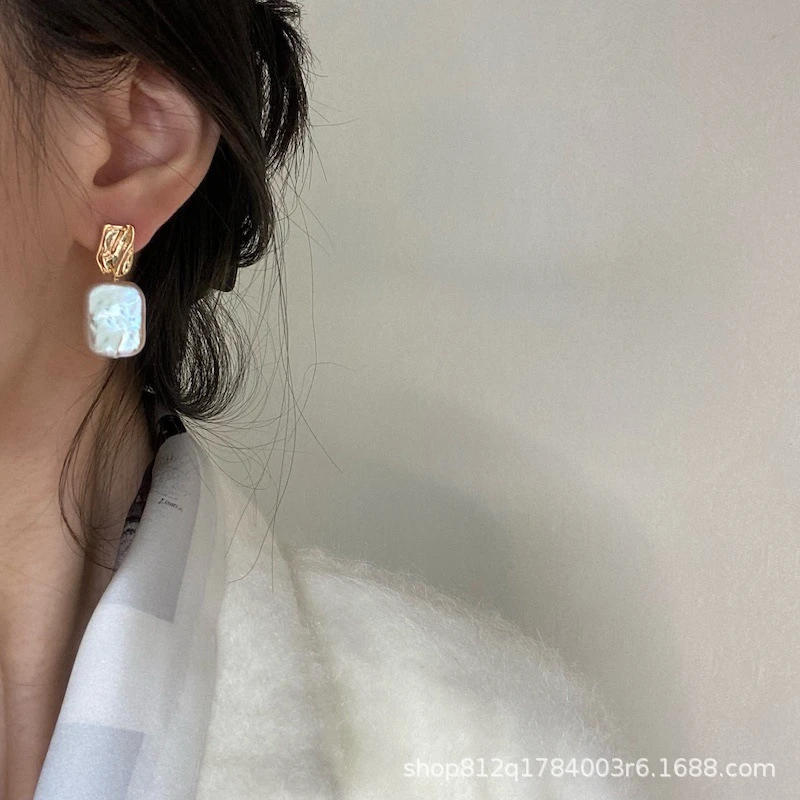 1 Pair Retro Square Freshwater Pearl Drop Earrings