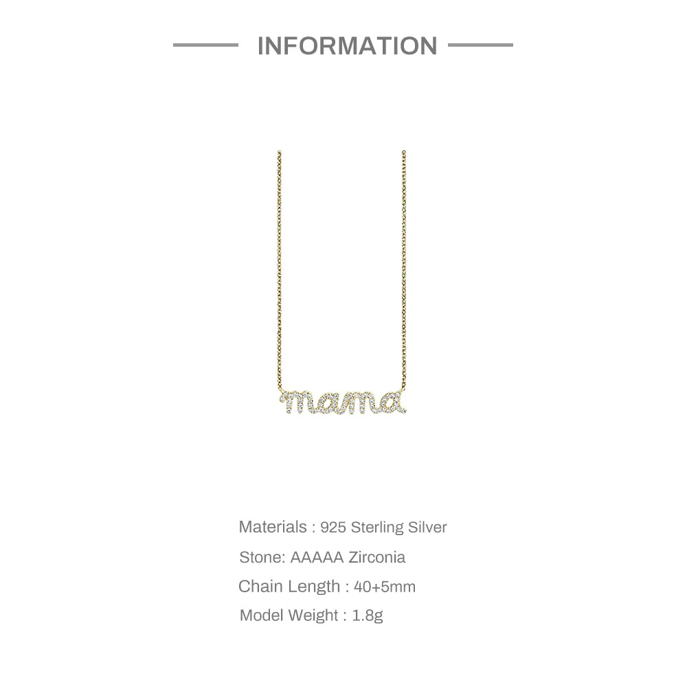 Wholesale Casual MAMA Classic Style Letter Sterling Silver Zircon Pendant Necklace