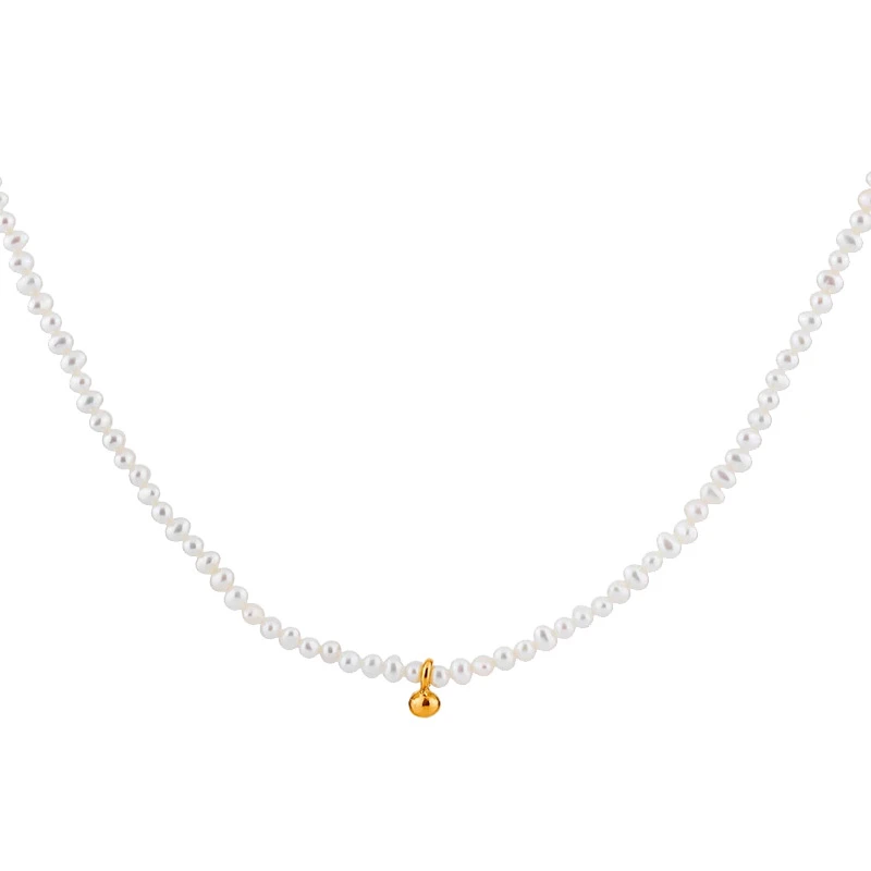 1 Piece Sweet Round Freshwater Pearl Sterling Silver Beaded Plating Necklace