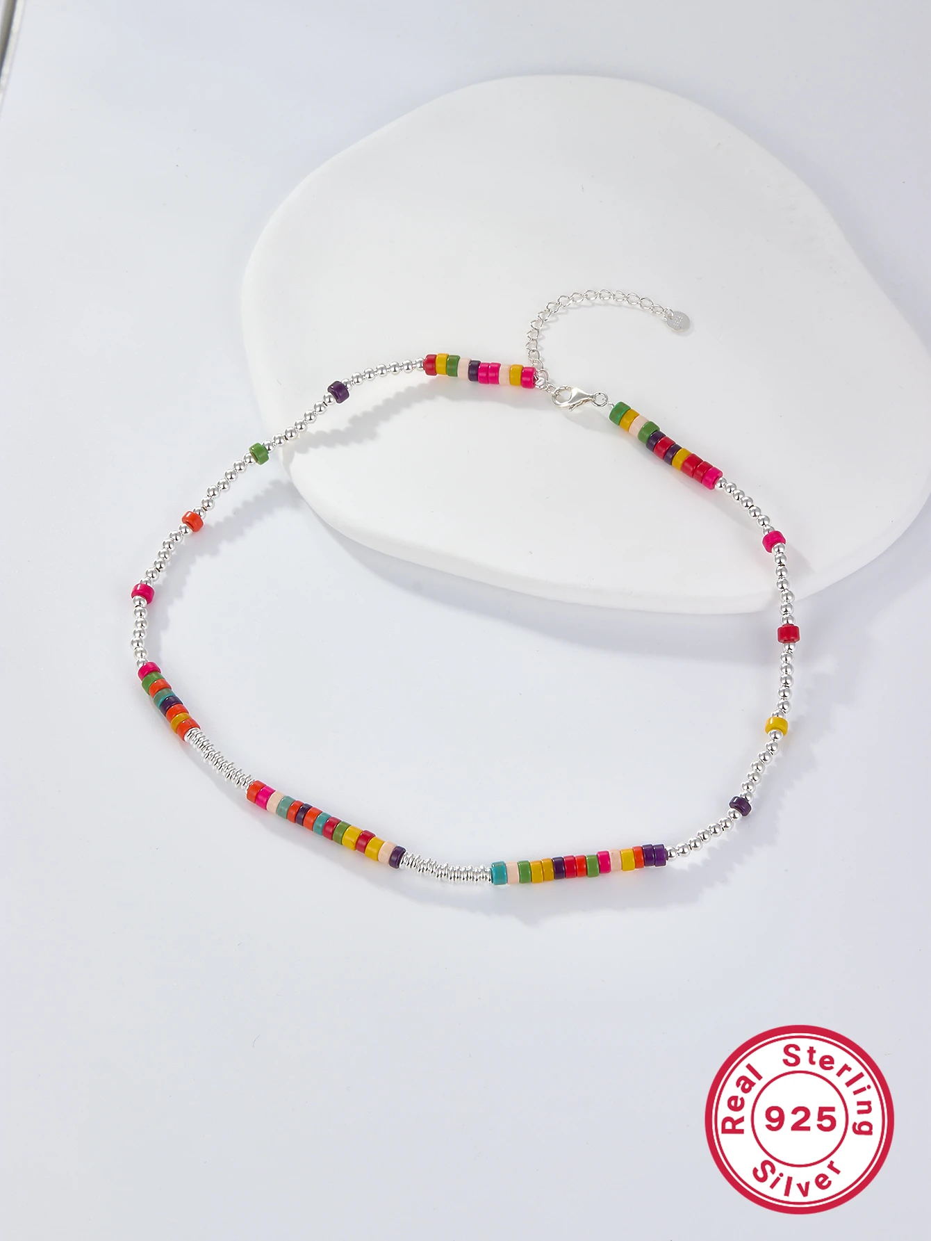 Casual Elegant Colorful Sterling Silver White Gold Plated Necklace
