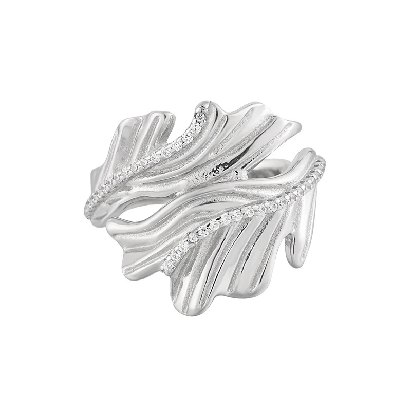 Elegant Ginkgo Leaf Sterling Silver Plating Inlay Zircon White Gold Plated Bracelets