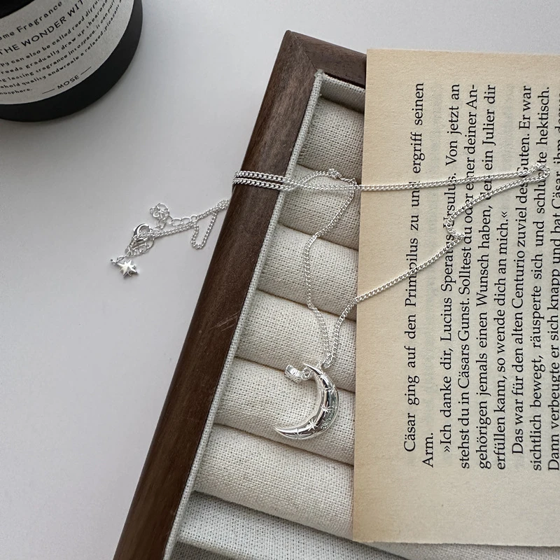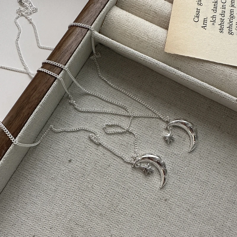 Casual Vacation Star Moon Sterling Silver Polishing Pendant Necklace