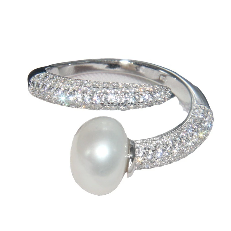 Classic Style Geometric Sterling Silver Inlay Artificial Gemstones Pearl Open Ring