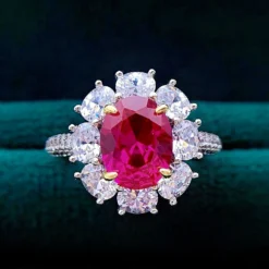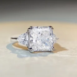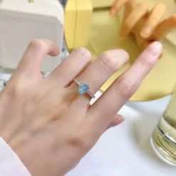 Elegant Luxurious Classic Style Heart Shape Sterling Silver Inlay High Carbon Diamond Rings