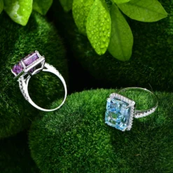 Elegant Square Sterling Silver Inlay High Carbon Drill Rings