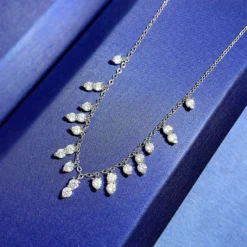 Lady Shiny Water Droplets Sterling Silver Inlay Artificial Pearls High Carbon Diamond Rings