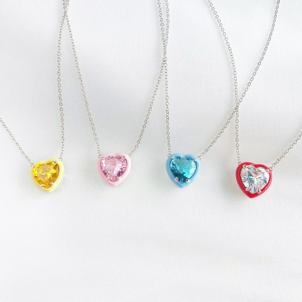 Fashion Heart Shape Sterling Silver Plating Zircon Pendant Necklace