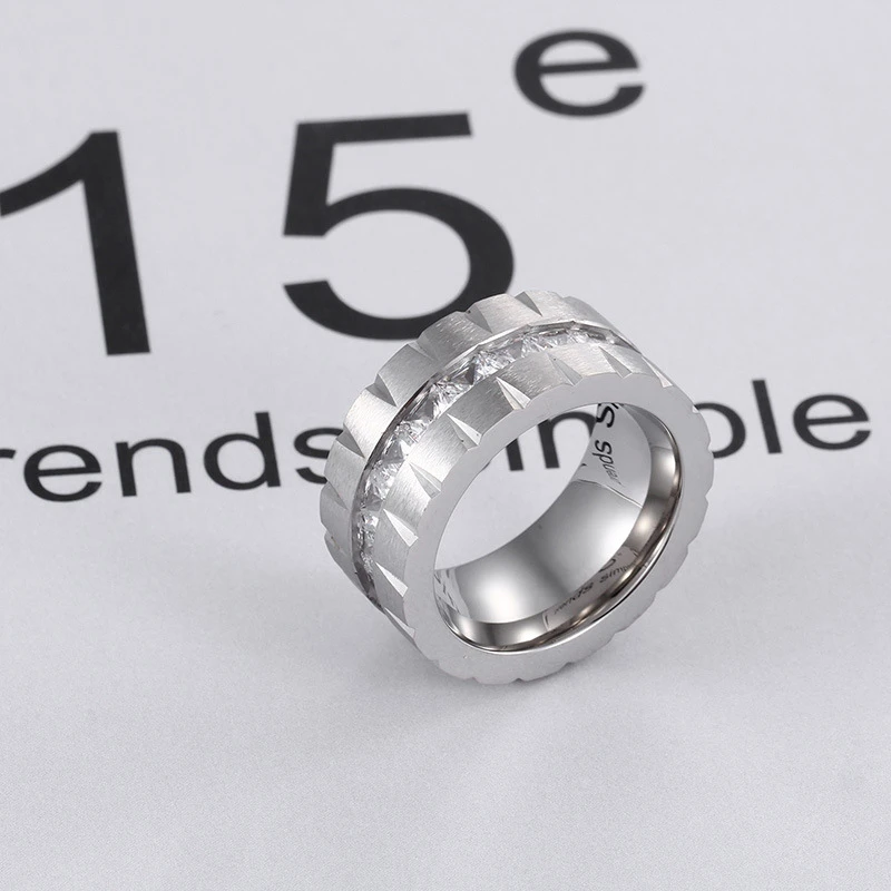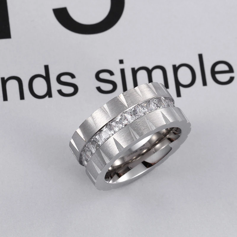 Dickies Dicka Titanium Ornament Wholesale European And American New Wide Surface Frosted Inlaid Lady Temperament Creative Ring