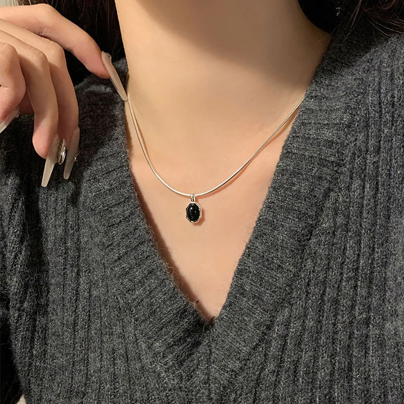 Elegant Geometric Sterling Silver Agate Pendant Necklace In Bulk