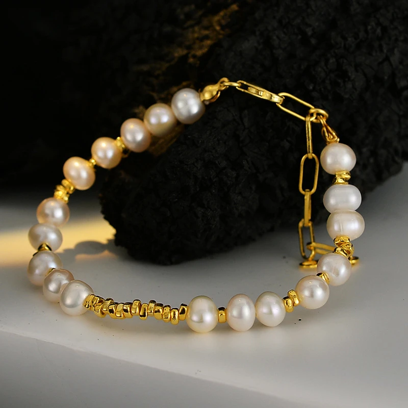 Elegant Irregular Freshwater Pearl Sterling Silver Beaded Bracelets