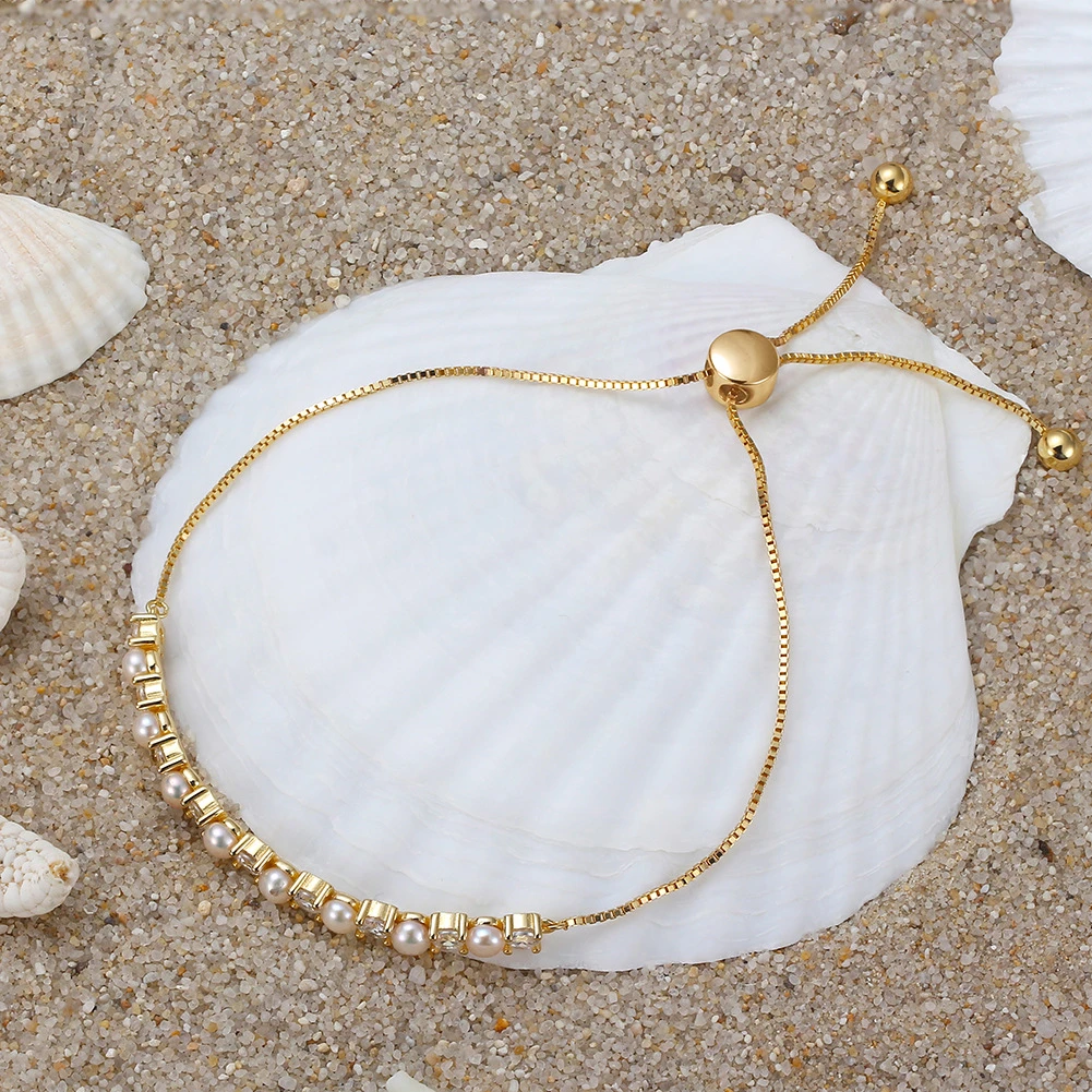 Elegant Round Sterling Silver Plating Inlay Freshwater Pearl Zircon Bracelets
