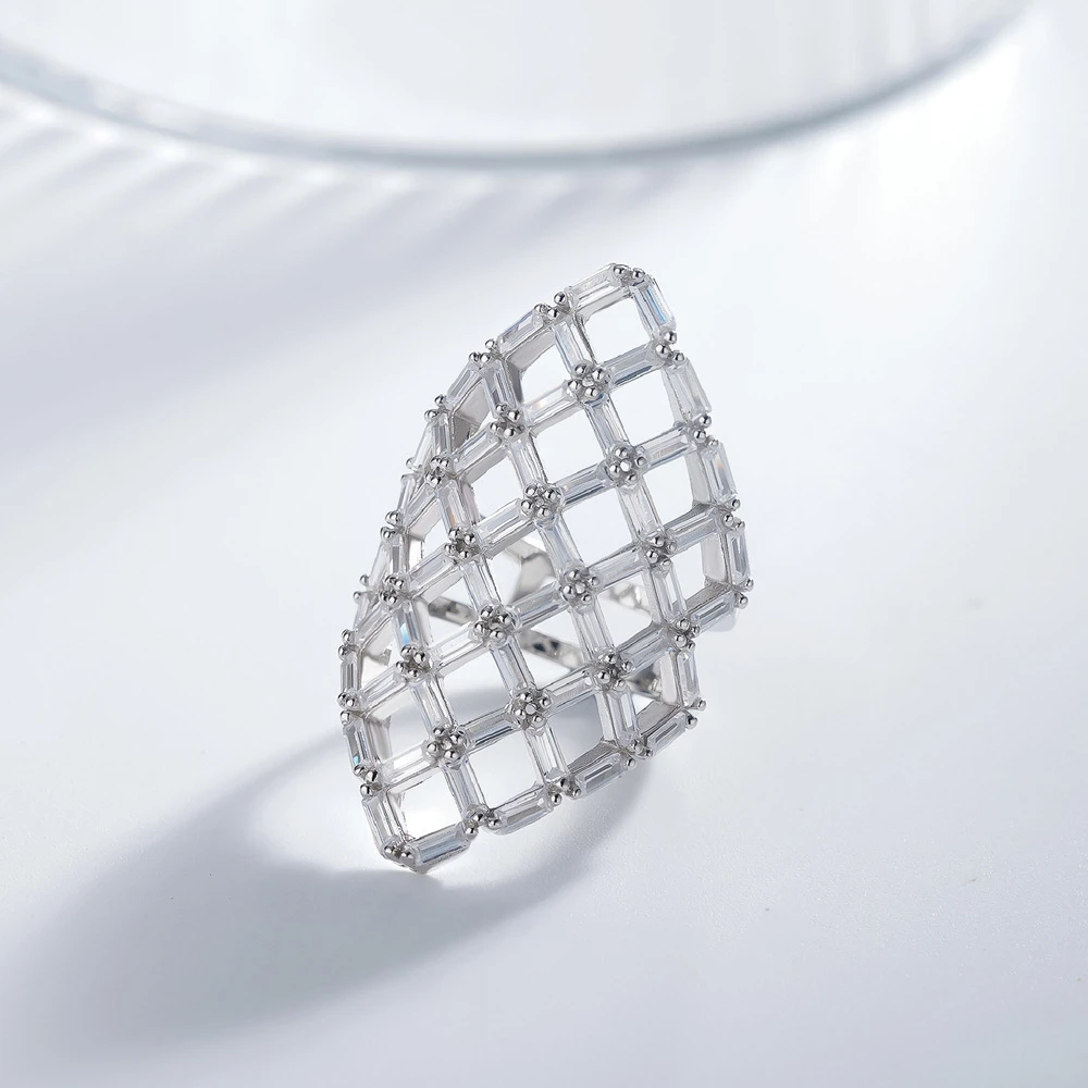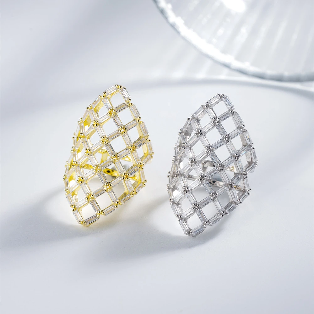 Exaggerated Geometric Sterling Silver Plating Inlay Artificial Gemstones Rings