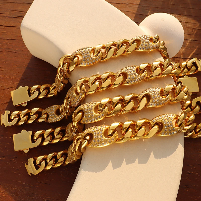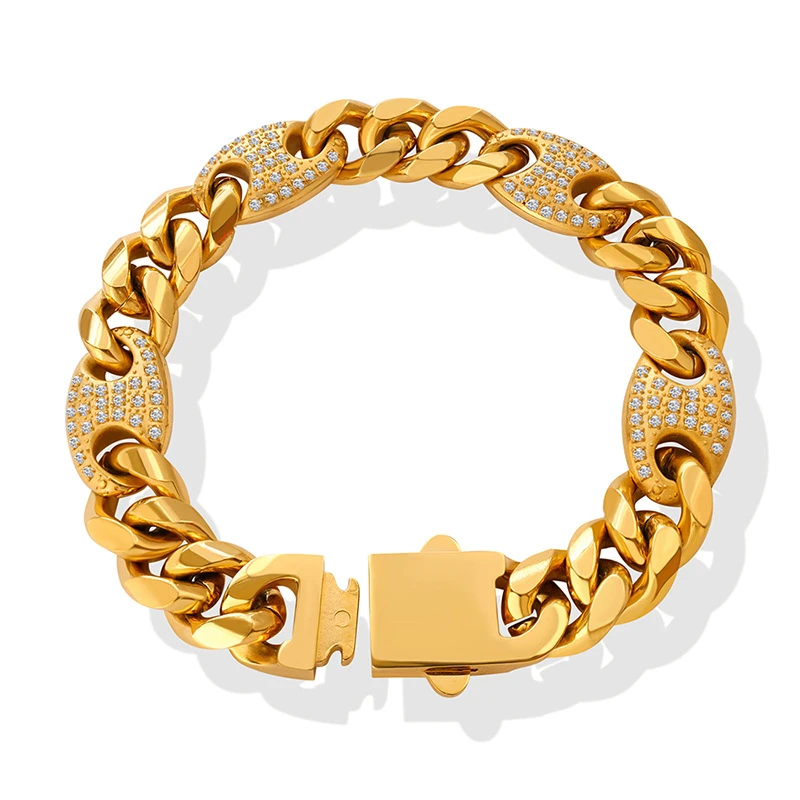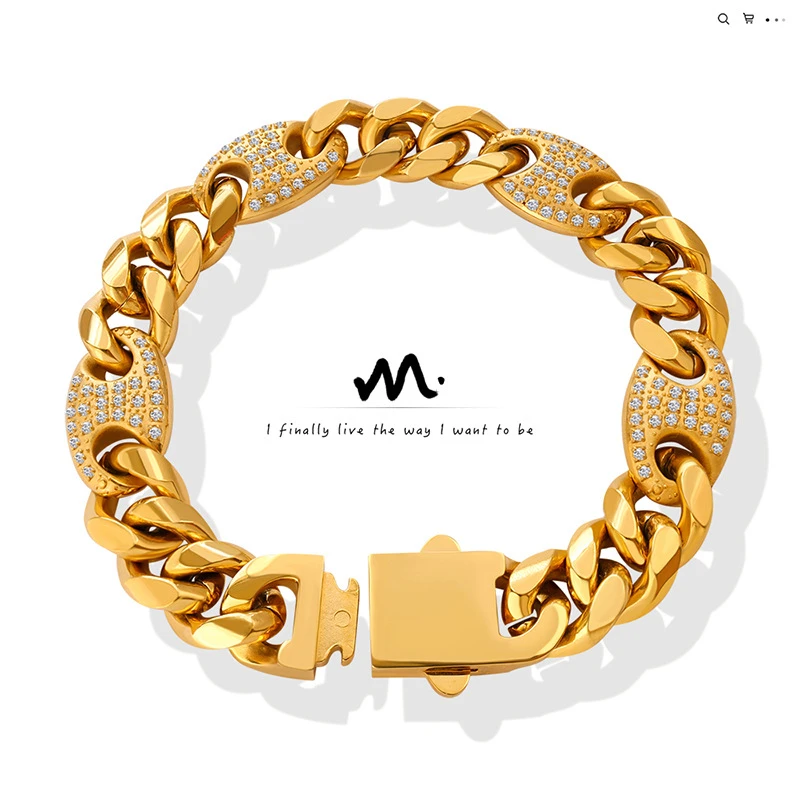 Fashion Inlaid Diamond Cuban Chain Titanium Steel Gold-Plated Bracelet