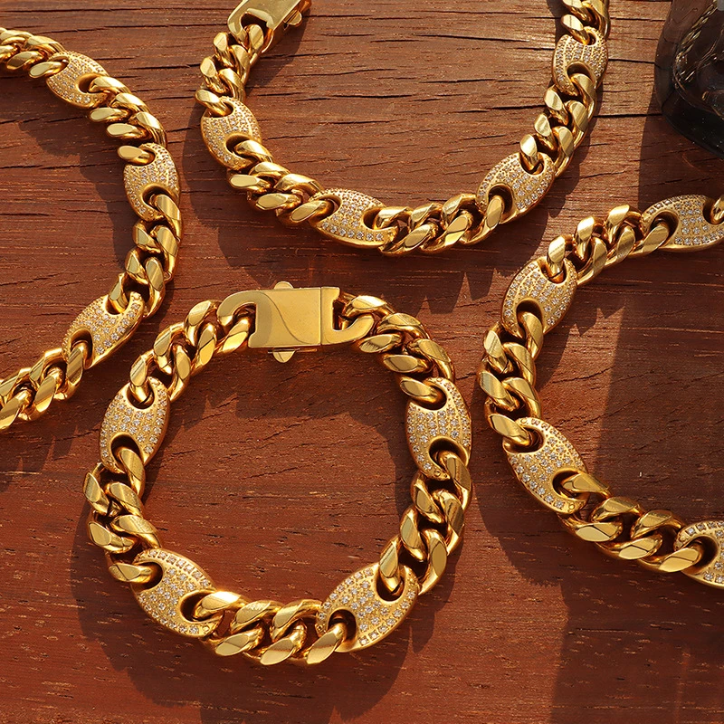 Be the first to review “Fashion Inlaid Diamond Cuban Chain Titanium Steel Gold-Plated Bracelet” Cancel reply
