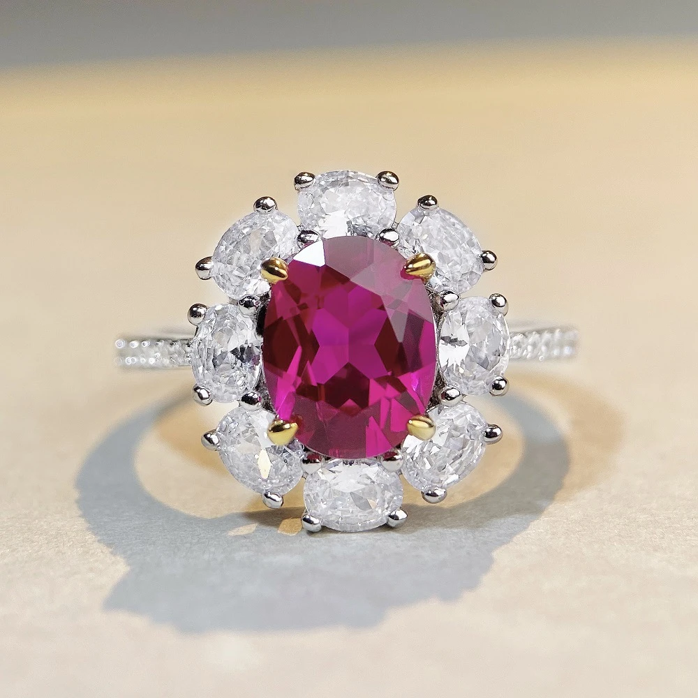 Fashion Oval Sterling Silver Plating Inlay Artificial Diamond Rings 1 Piece