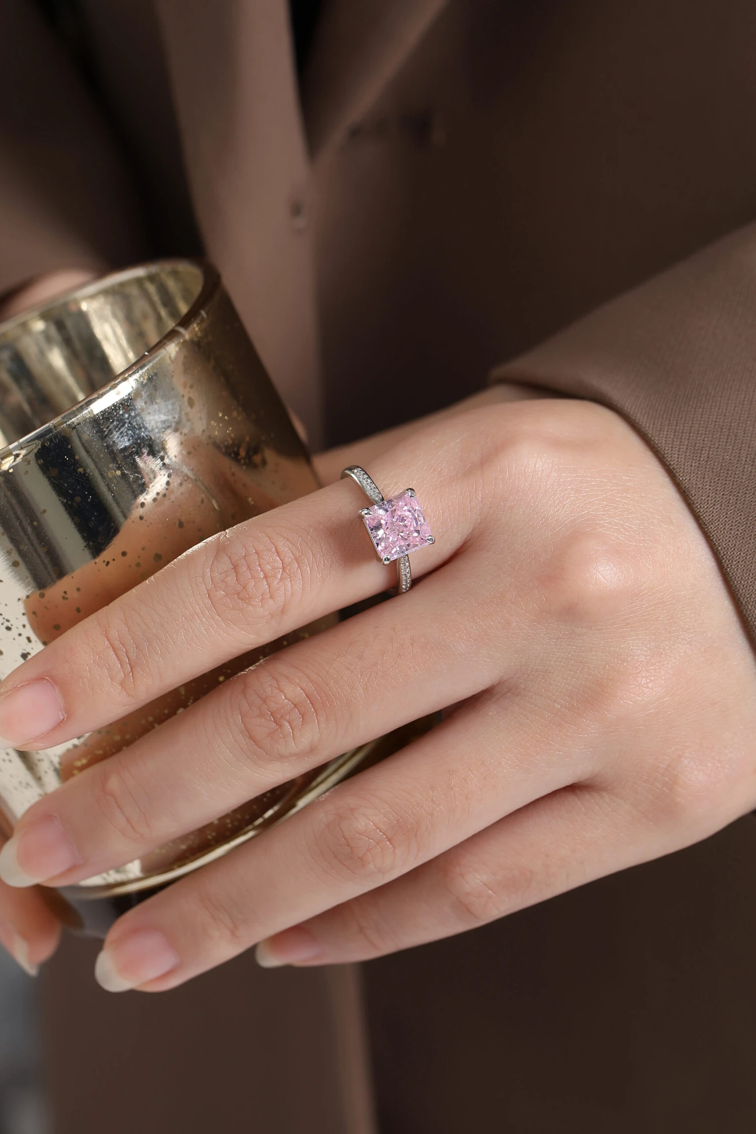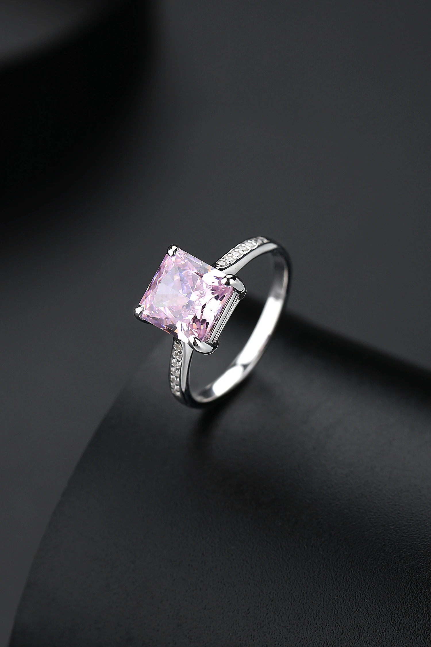 Fashion Simple Style Square Sterling Silver Inlay Zircon Rings 1 Piece