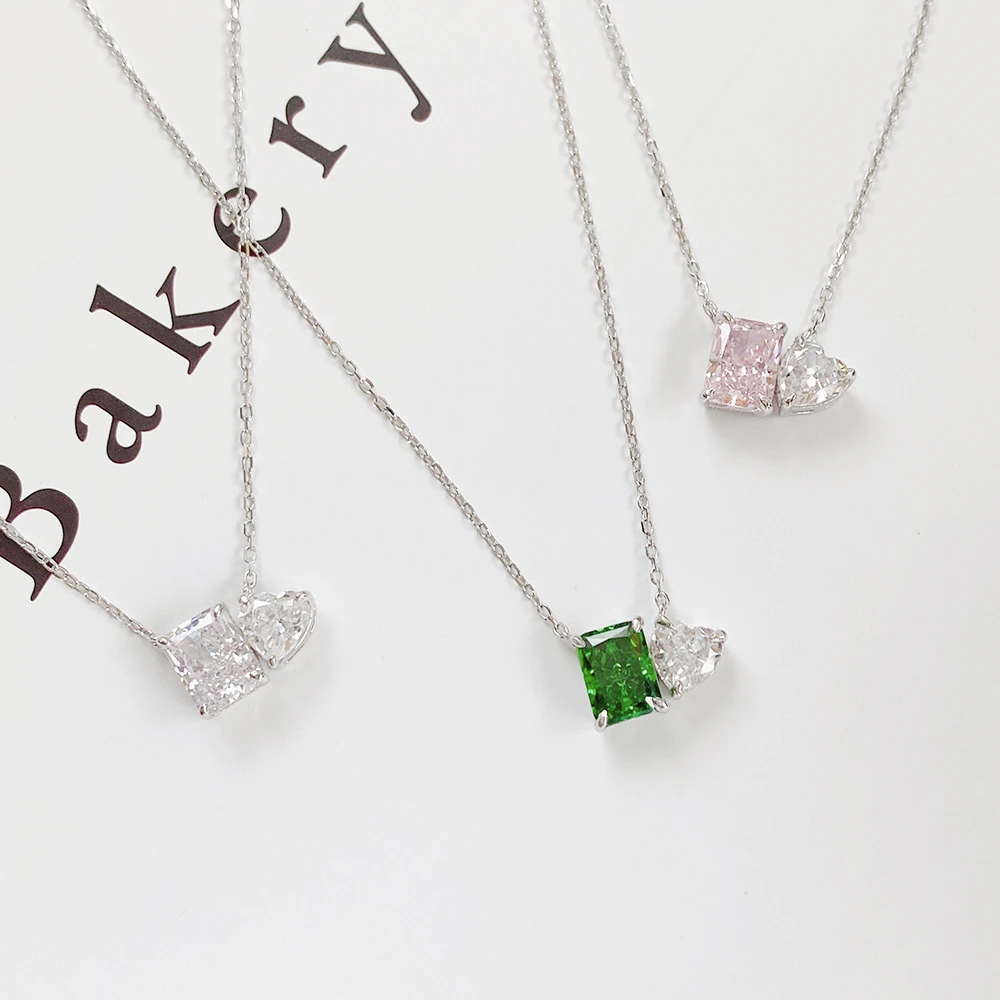 Fashion Square Heart Shape Sterling Silver Plating Inlay Zircon Pendant Necklace 1 Piece
