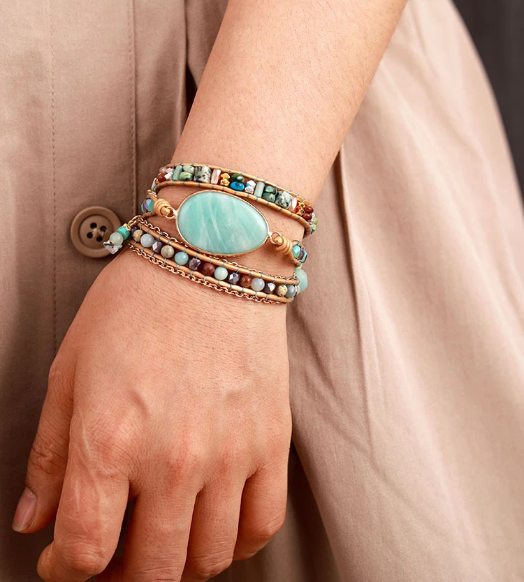 Fashion Water Droplets Pu Leather Natural Stone Patchwork Women’S Bracelets 1 Piece