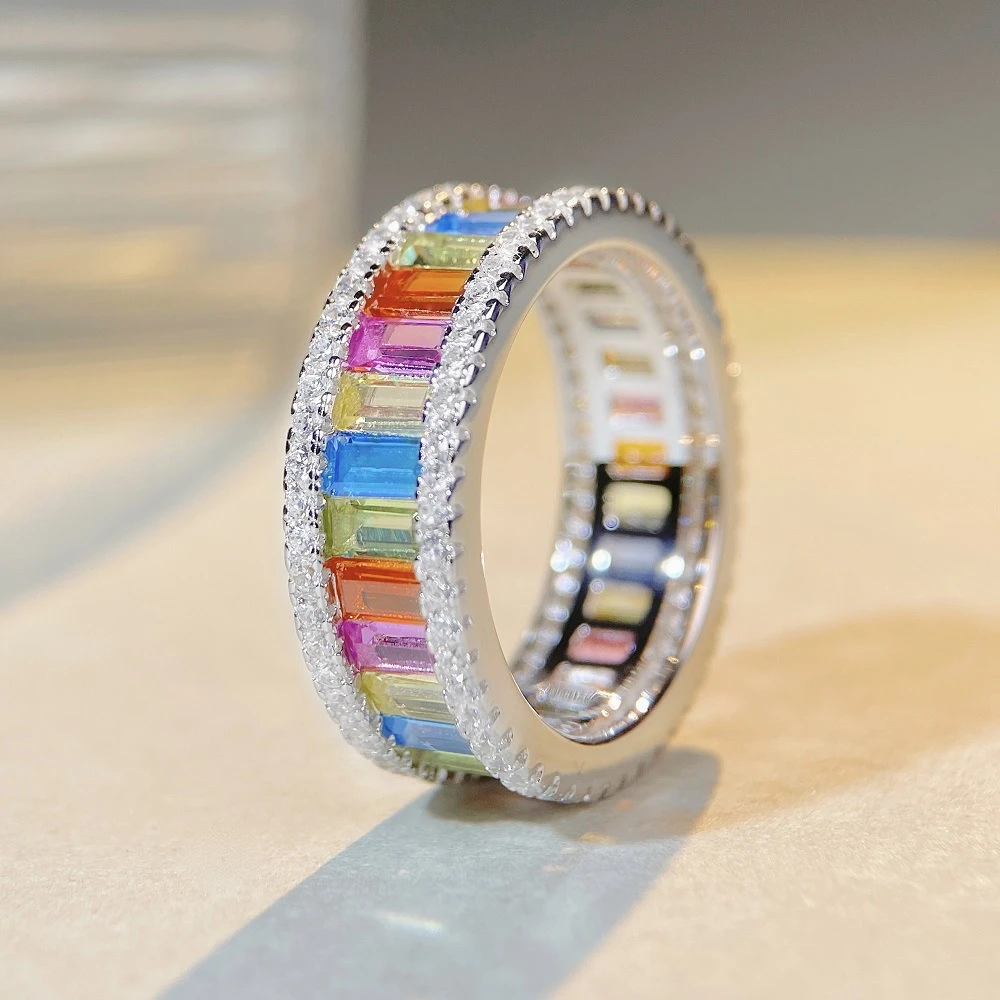 Glam Rainbow Square Sterling Silver Inlay High Carbon Drill Rings