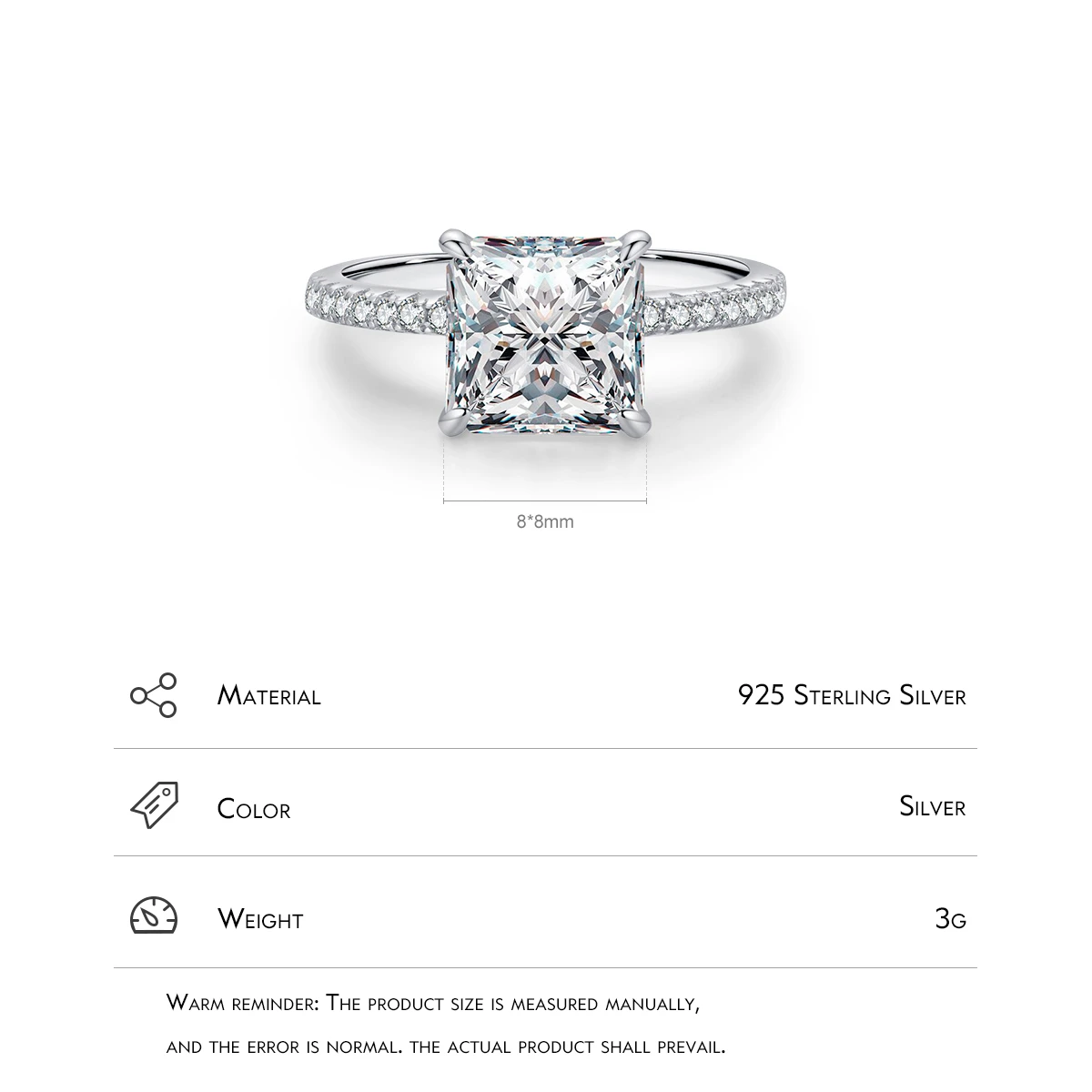 IG Style Elegant Shiny Square Sterling Silver Plating Inlay Zircon Rhodium Plated Rings