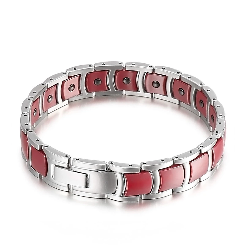 Korean Fashion Magnet Bracelet European And American Men’s Titanium Steel Bracelet Stainless Steel Personalized Red Ceramic Strap Bracelet