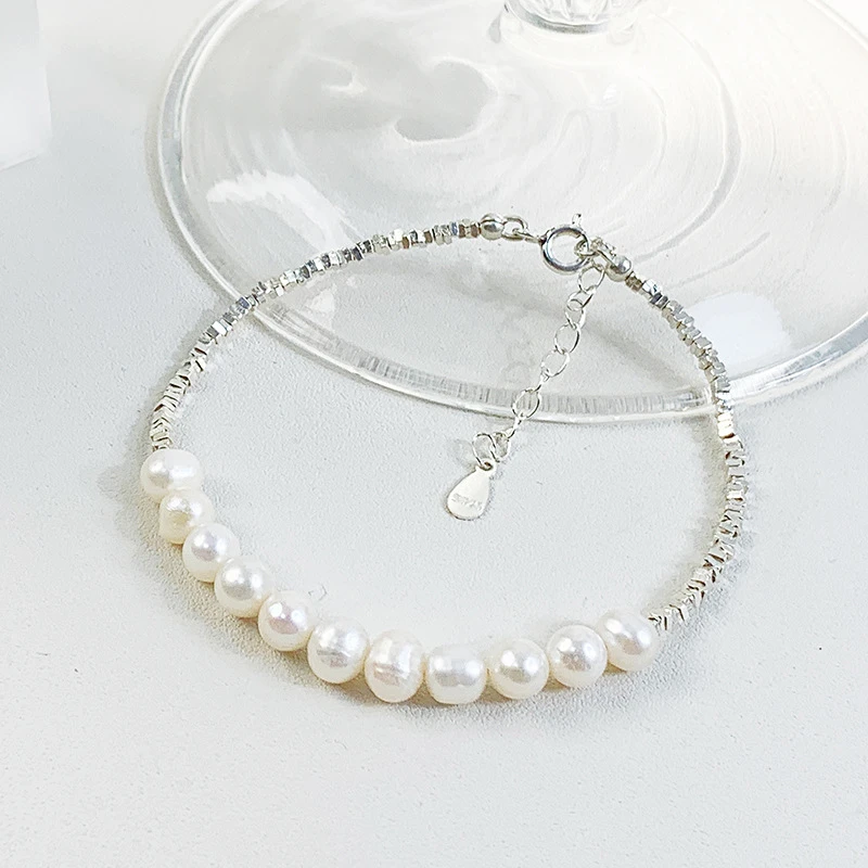 Lady U Shape Freshwater Pearl Sterling Silver Beaded Plating Bracelets