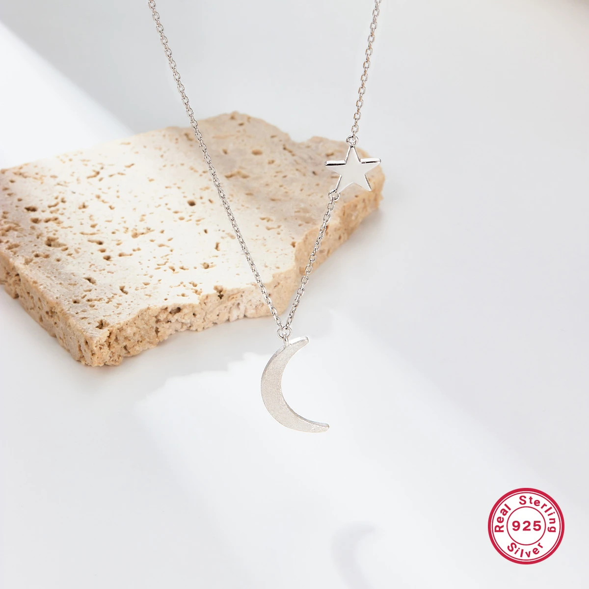 Luxurious Star Moon Sterling Silver Plating White Gold Plated Pendant Necklace