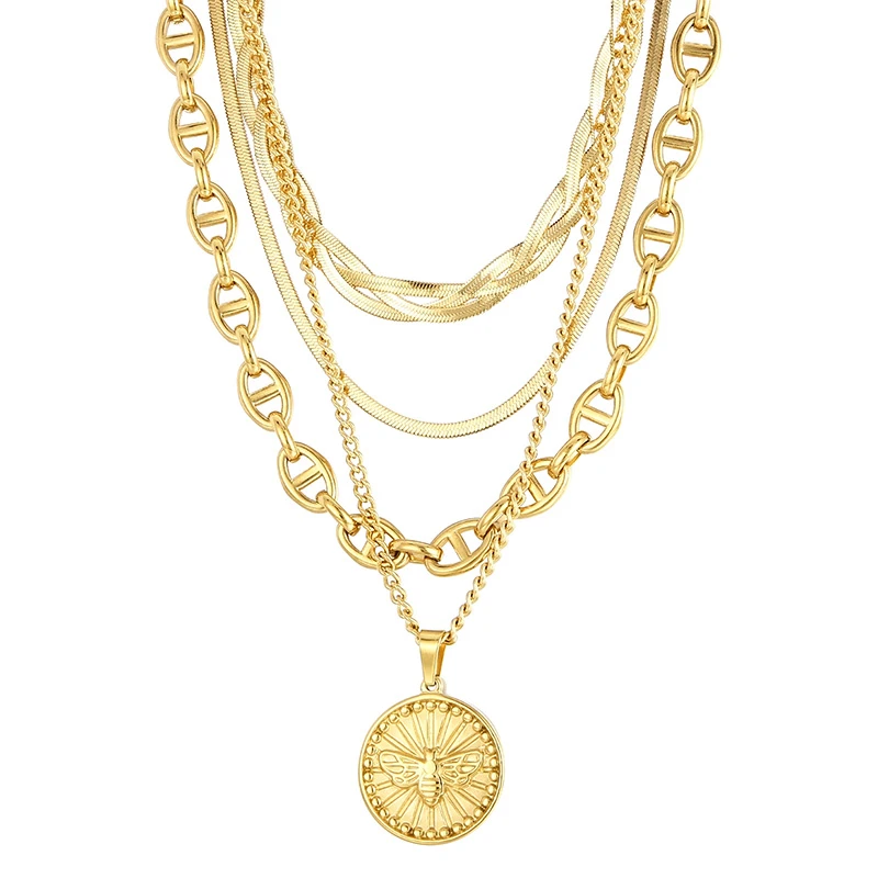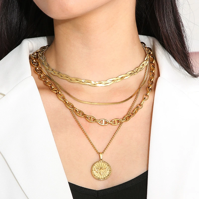 Modern Style Coin Stainless Steel Titanium Steel Plating 18K Gold Plated Layered Necklaces