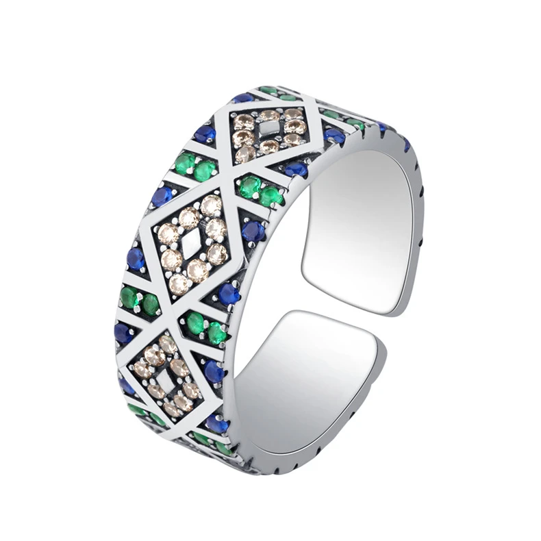 Modern Style Geometric Sterling Silver Inlay Zircon Open Ring