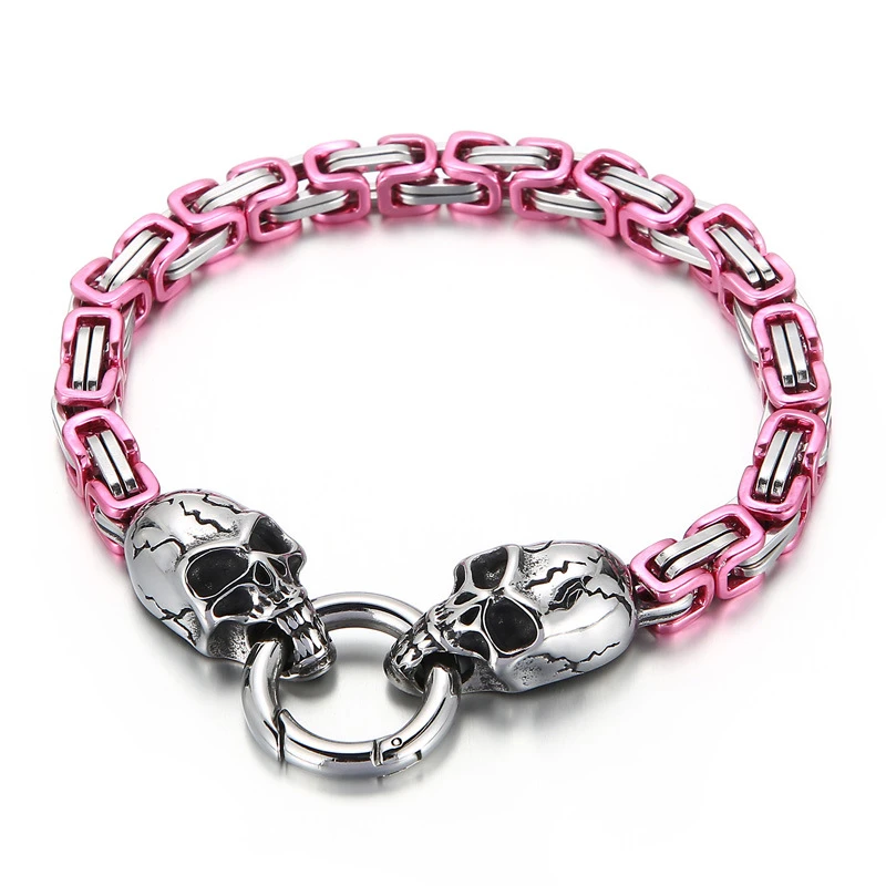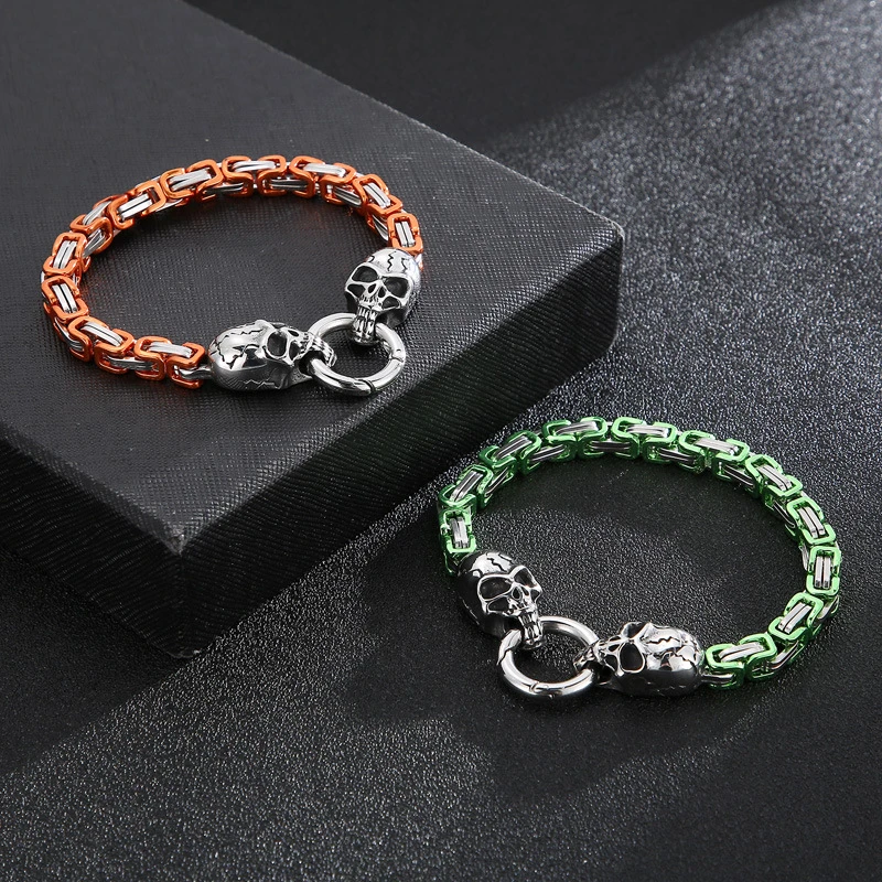 New Hip-hop Pattern Chain Skull Head Titanium Steel Hollow Thick Bracelet