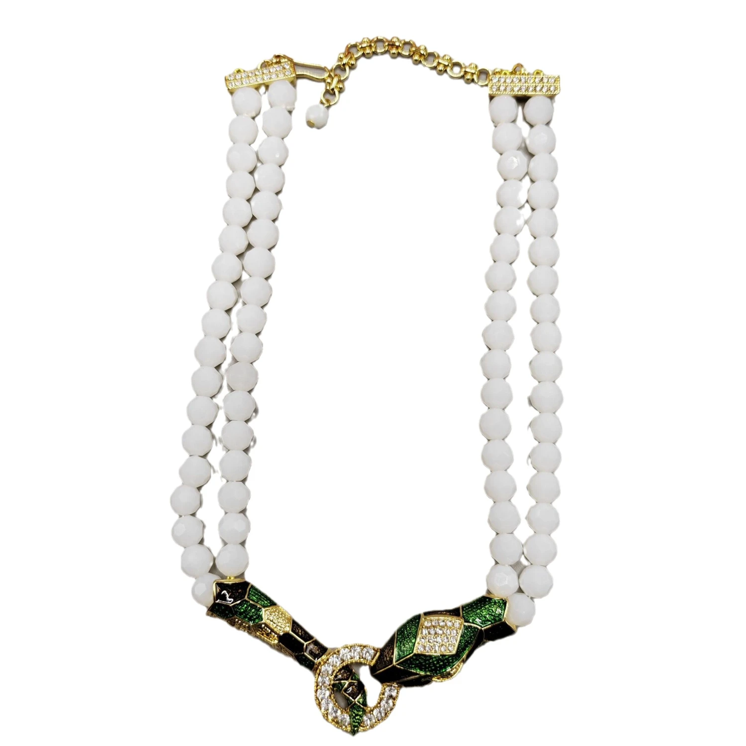 Retro French Style Snake Imitation Pearl Alloy Plating Inlay Rhinestones Gold Plated Women’s Double Layer Necklaces
