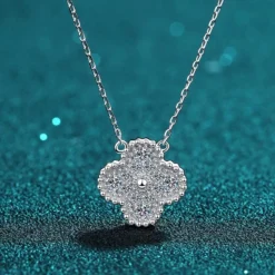 Classic Style Flower Sterling Silver Inlay Moissanite Pendant Necklace
