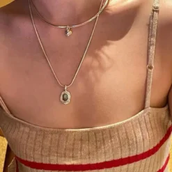 Casual Elegant Colorful Sterling Silver White Gold Plated Necklace
