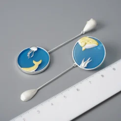 1 Pair Elegant Original Design Jellyfish Whale Inlay Sterling Silver Agate Drop Earrings
