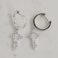 1 Pair Elegant Lady Cross Inlay Sterling Silver High Carbon Diamond White Gold Plated Drop Earrings
