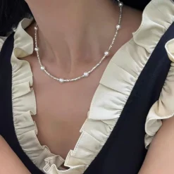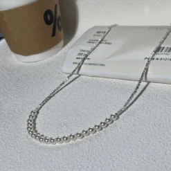 IG Style Elegant Round Sterling Silver Beaded Pearl Plating Necklace