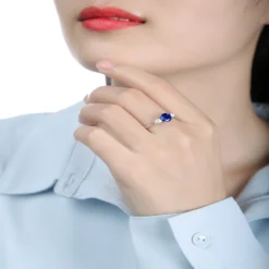Luxurious Oval Sterling Silver Inlay High Carbon Diamond Rings