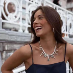 Novelty Oval Lines Silver Plated Artificial Crystal Pendant Necklace In Bulk
