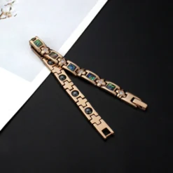 Personality Fashion Rose Gold Inlaid Metal Stone Titanium Steel Bracelet