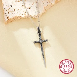 Retro Lady Cross Sterling Silver Plating White Gold Plated Pendant Necklace