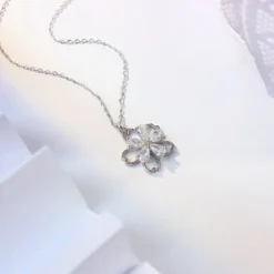 Simple Style Flower Sterling Silver Inlay Zircon Pendant Necklace
