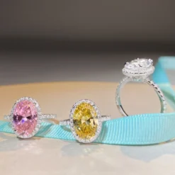 Wholesale Elegant Basic Shiny Oval Sterling Silver Plating Inlay High Carbon Diamond Rings