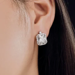 1 Pair Luxurious Square Sterling Silver Inlay Zircon Drop Earrings