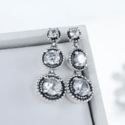 1 Pair INS Style Vintage Style Round Sterling Silver Plating Inlay Zircon Drop Earrings
