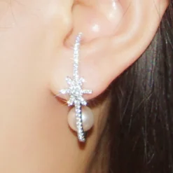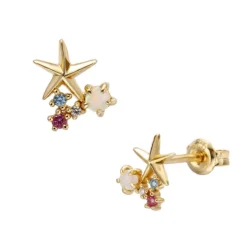1 Pair Lady Star Inlay Flakes Sterling Silver Artificial Gemstones Ear Studs